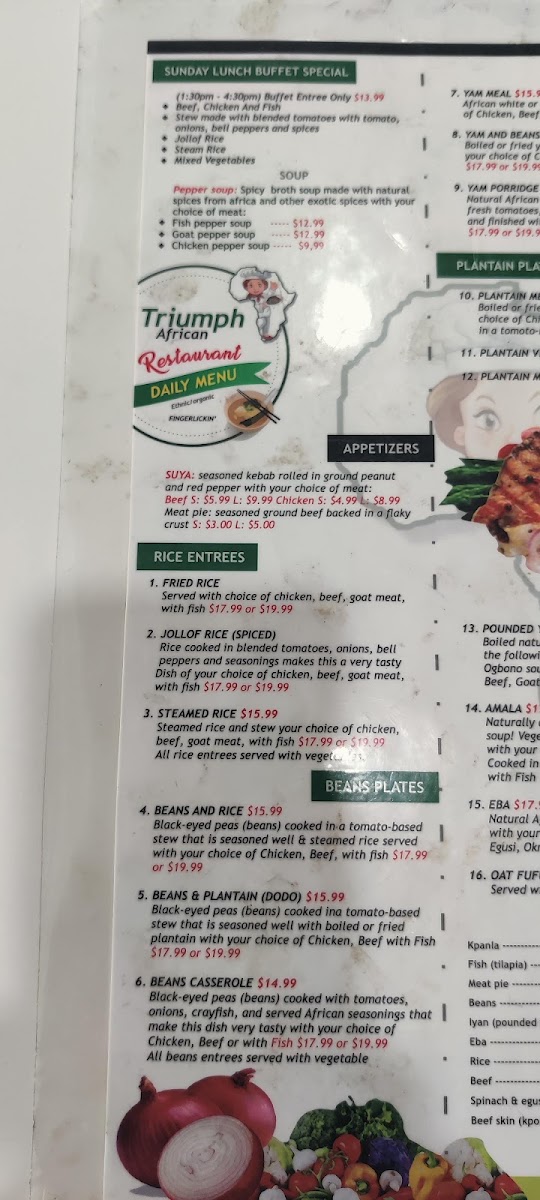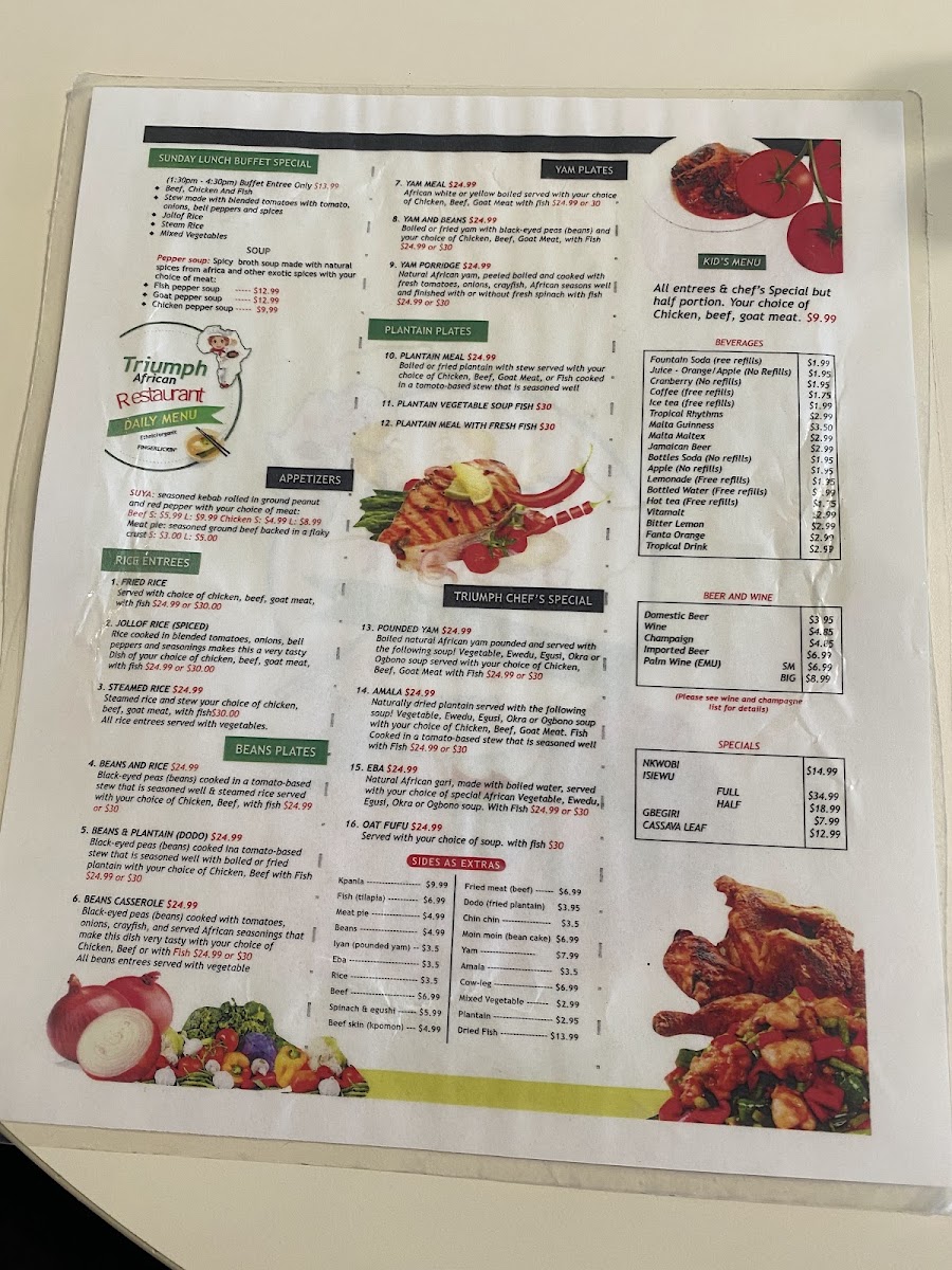 Welcome to Triumph African Restaurant & Market, a hidden gem nestled in the heart of Fresno, California! Located at 5730 N First St #108/109, our establishment is not just a restaurant; it's an immersive experience into the rich flavors and vibrant culture of African cuisine. At Triumph, you will find a delightful combination of traditional home-cooked meals served with love and care, making every visit feel like a visit to a cherished friend’s kitchen.