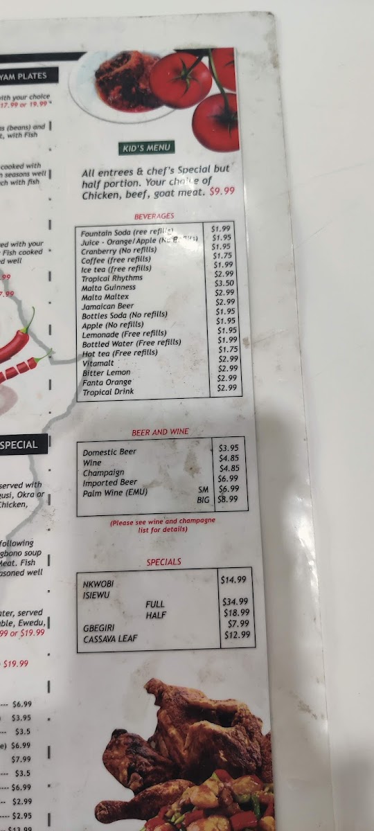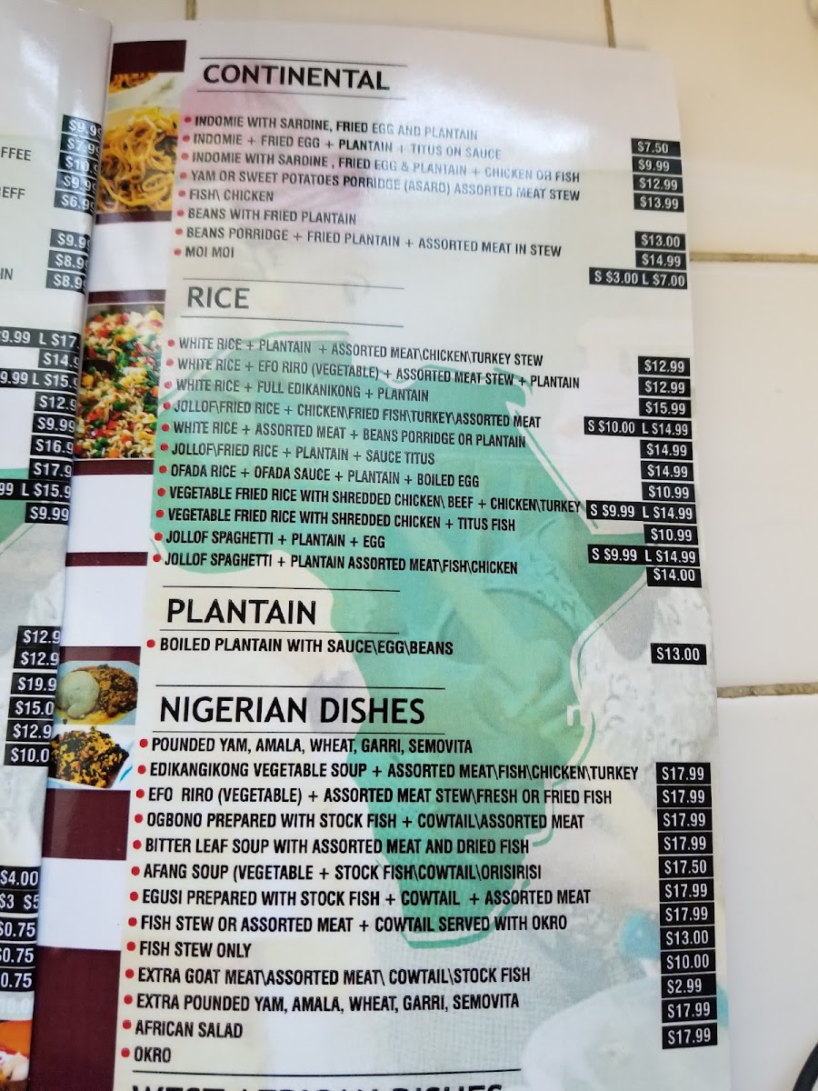 Every time I come here I get Chicken w/ Egusi soup and 2 pounded yams for 32 and every time it gives what it is supposed to be given . Marcilina usually greets me w/ great customer service and conversation and the food is always served hot and tasteful w/ enough for me to have a bite for later. The food is a bit pricey but as you see I keep going back lol. I highly recommend this place to anyone looking to try African food for the first time because my first, second and third time here were all a great experience. Thank you so much for the experience Marcilina xo